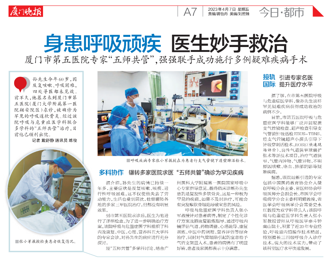 厦门晚报:“五师共管”强强联手,成功施行多例疑难疾病